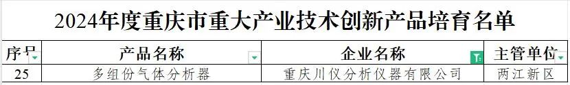 近日,重庆市经济和信息化委员会正式公布了本年度重大产业技术创新产品培育名单,川仪分析仪器研发的多组份气体分析器成功入围。