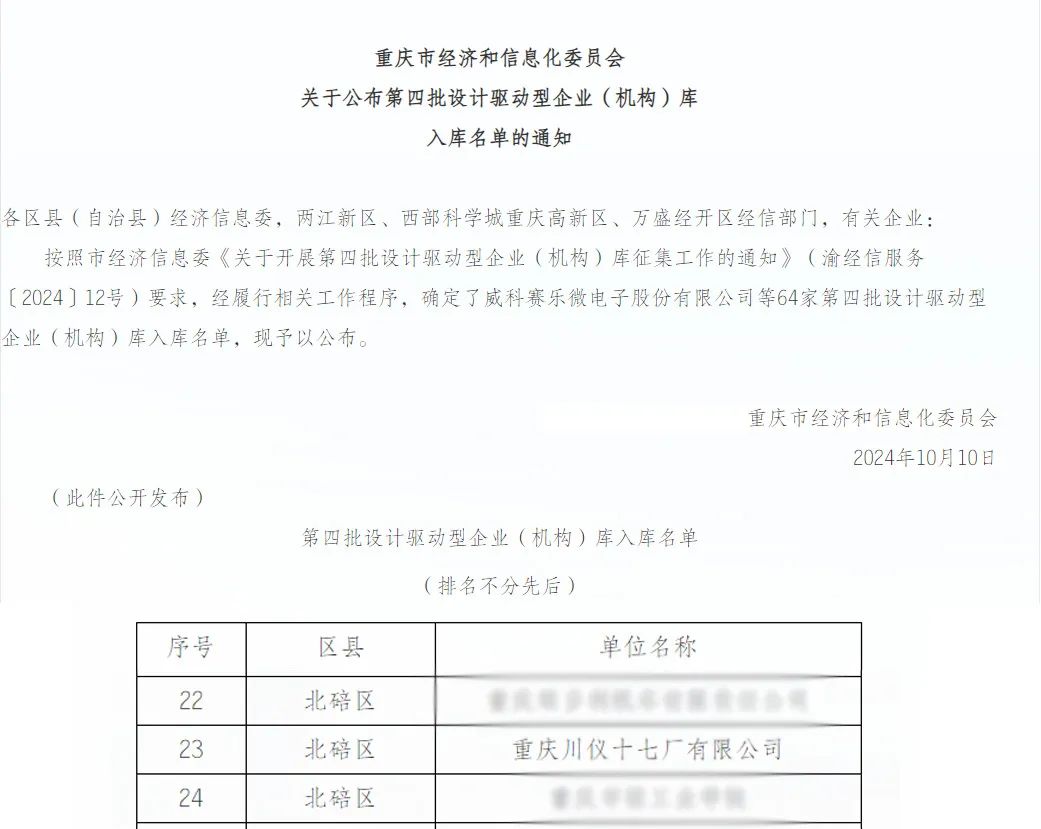 喜讯丨川仪十七厂成功入选重庆市第四批设计驱动型企业库